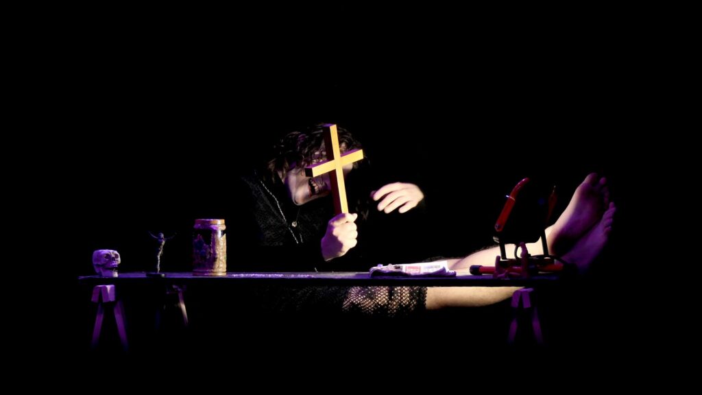 Dans ce seul en scène, Yannick Cotten interprète un démon gouailleur et irrévérencieux. Avec un humour corrosif il endosse les différents rôles qu’à joué le diable dans l’histoire, du tentateur à l’accusateur en passant par le séducteur dépravé. On aura le droit à tout, aux révélations les plus profondes comme aux petites anecdotes croustillantes.